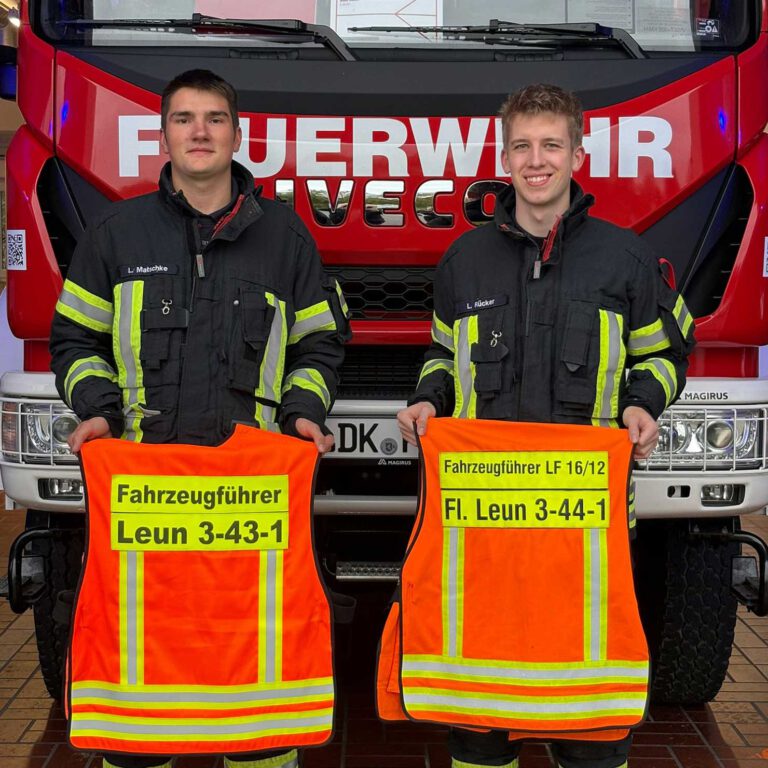 Am 22. Oktober konnten Lukas Matschke und Lennart Rücker erfolgreich den Gruppenführer-Lehrgang im eLearning Format abschließen. Mit der abgeschlossenen Ausbildung sind beide als Führungskräfte im