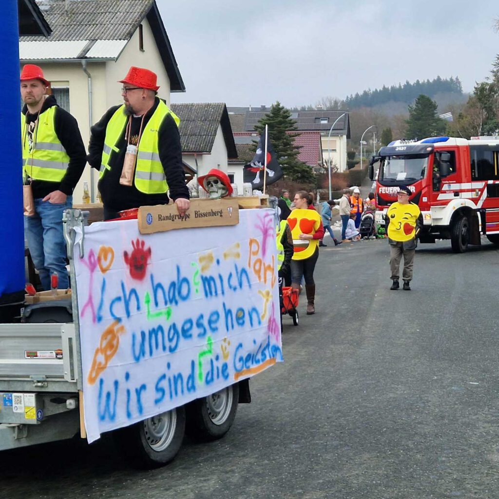 Die Feuerwehr Leun bedankt sich bei allen Beteiligten und Zuschauern für das rücksichtsvolle Verhalten – ein gelungener Tag für alle Jecken in Bissenberg!