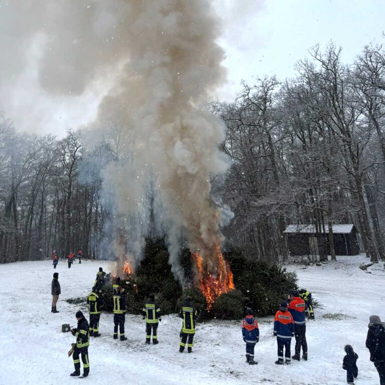 Am 10. Januar starteten die Jugendfeuerwehren in allen Ortsteilen ab 9:00 Uhr mit dem Einsammeln der ausgedienten Weihnachtsbäume. Trotz anhaltenden Schneefalls konnten sämtliche Bäume planmäßig