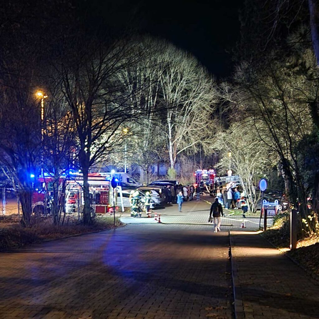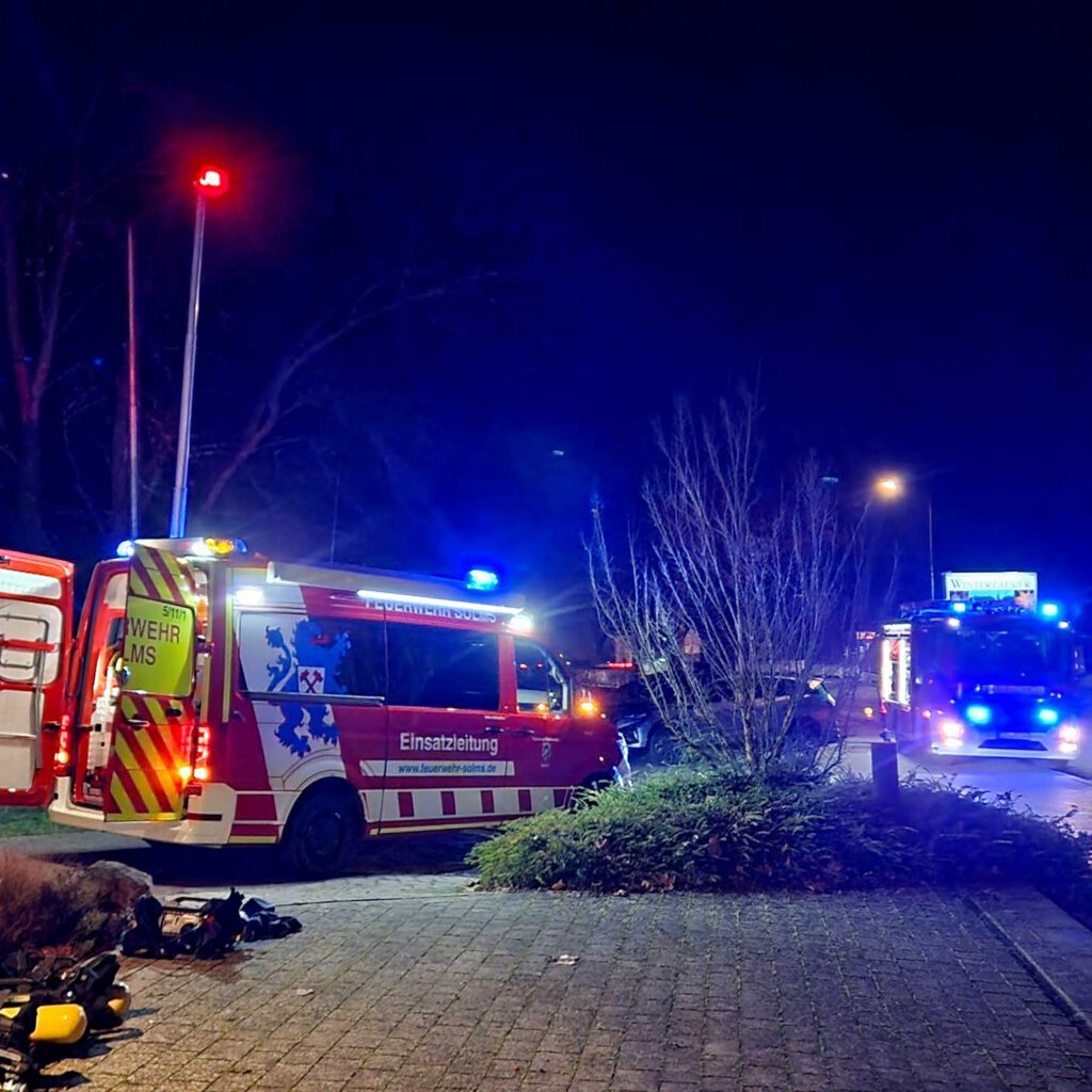 Bei einer groß angelegten Alarmübung aller Stadtteile der Stadt Solms wurde gestern ein anspruchsvolles Einsatzszenario durchgespielt. Angenommen wurde ein Feuer im Gebäude der Stadtverwaltung, das sich rasch auf die angrenzende Taunushalle ausbreitete.