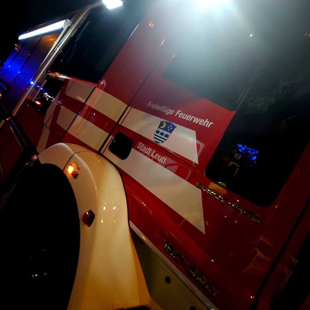 Aufgrund der Sperrung der Brücke über die B49 wurde auch die Feuerwehr Leun in das Übungsgeschehen eingebunden, um eine realistische Einsatzlage abzubilden und die interkommunale Zusammenarbeit zu testen. Die Wehr Leun unterstützte die Solmser Einheiten bei Brandbekämpfung und Koordination.